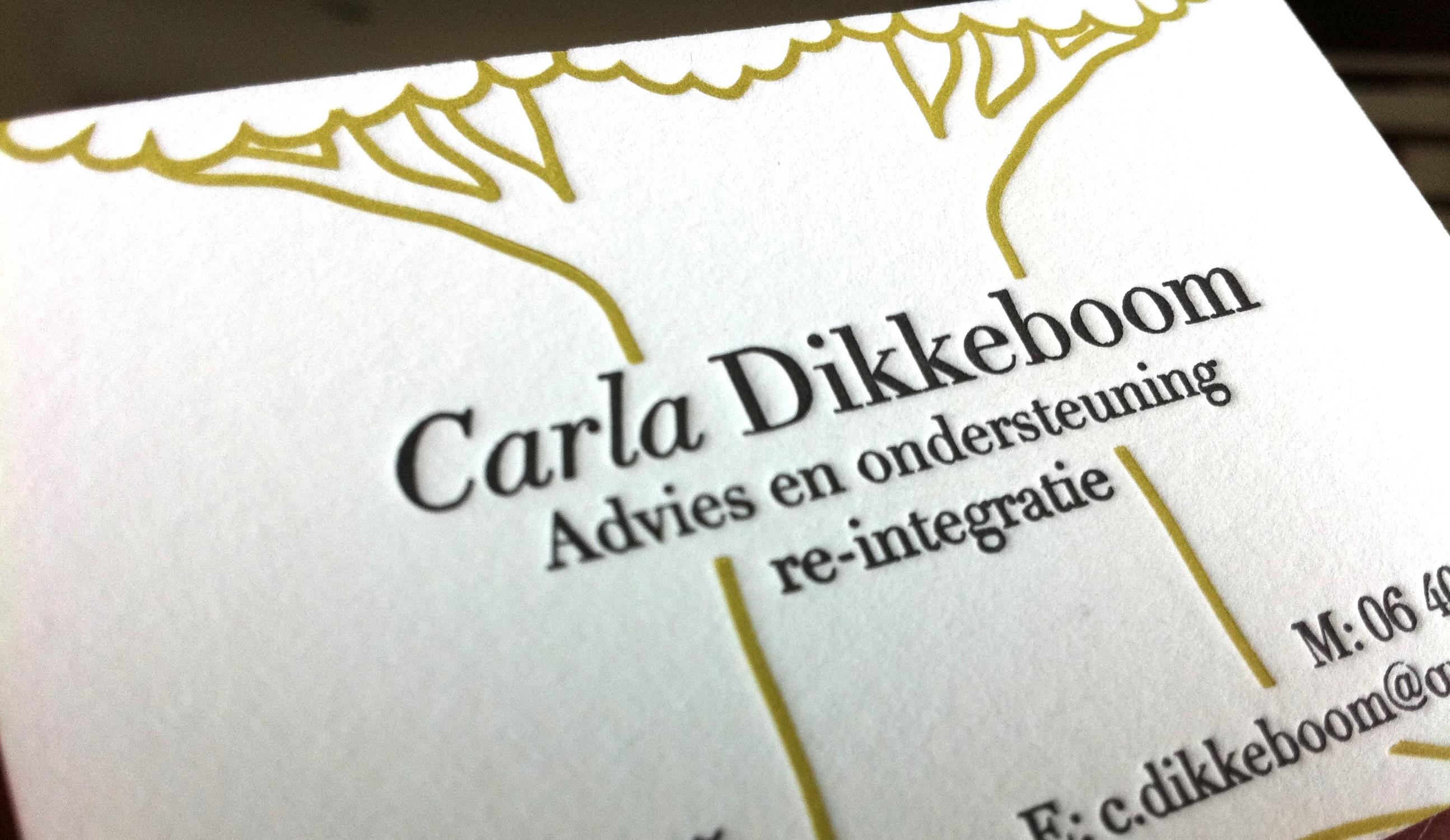 Carla Dikkeboom adviseert en biedt ondersteuning op het gebied van re-integratie. Voor het leggen van de eerste contacten met potentiële klanten heeft zij bewust gekozen voor een visitekaartje dat laat zien dat zij zich onderscheidt van alle andere aanbieders.