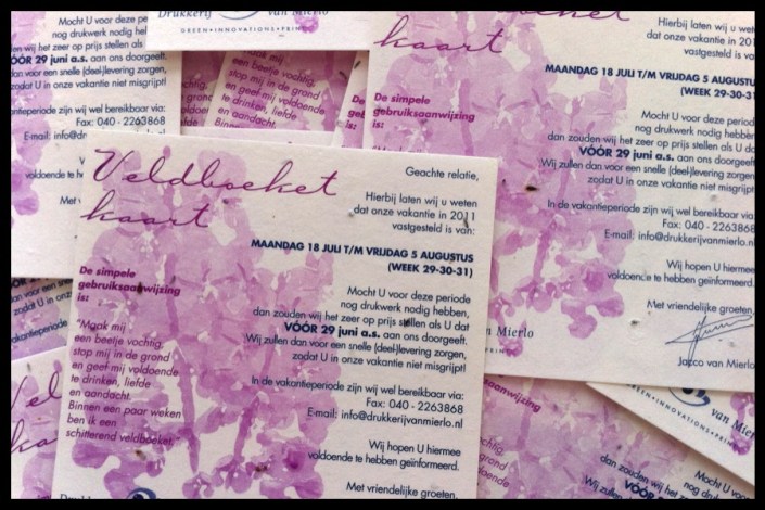 Niet alleen een leuke manier om klanten op de hoogte te brengen, maar ook nog eens een een blijvend geschenk voor de klant. Na het lezen kan hij of zij de kaart in de grond stoppen, drinken, liefde en aandacht geven zodat er daarna een mooi boeket gaat bloeien.