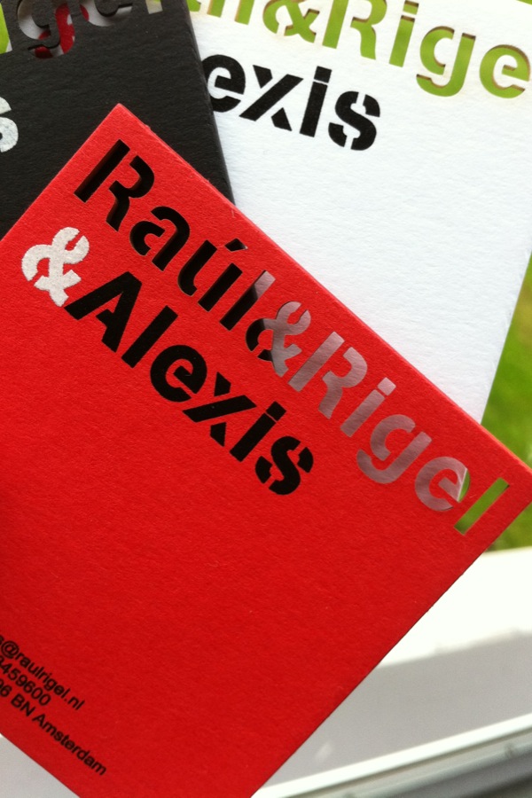 Ze noemen zichzelf een offroad, streetwise production agency: de mensen van Raúl&Rigel in Amsterdam. Met internationale aspiraties. Voor de nieuwe visitekaartjes kozen ze voor een apart formaat 65×65 mm, een apart paper Colorplan in Bright Red, Ebony en Prestine White. Niet in een van de standaard gewichten, maar speciaal voor deze opdracht in 1080 g/m2. Hofmans Drukkerijen in Ijsselstein verzorgde het complete traject van laserstansen, drukken en afwerken.