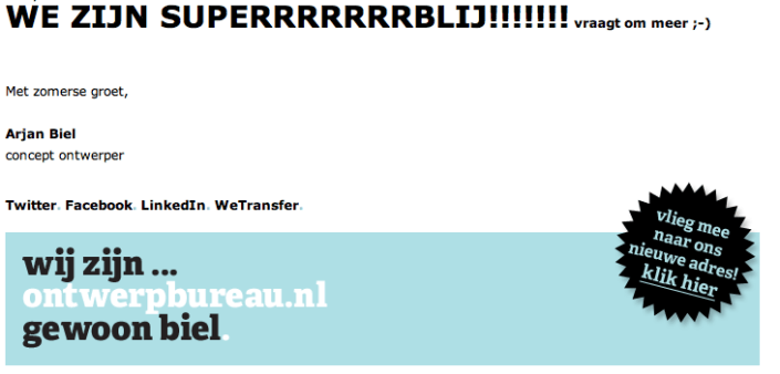 Als je zo’n mailtje krijgt van de klant (reclame- en ontwerpbureau gewoon biel in Zwolle), dan weet je dat ook hij tevreden is. En nog belangrijker, zijn opdrachtgever is helemaal in zijn nopjes met zijn nieuwe kaartje.