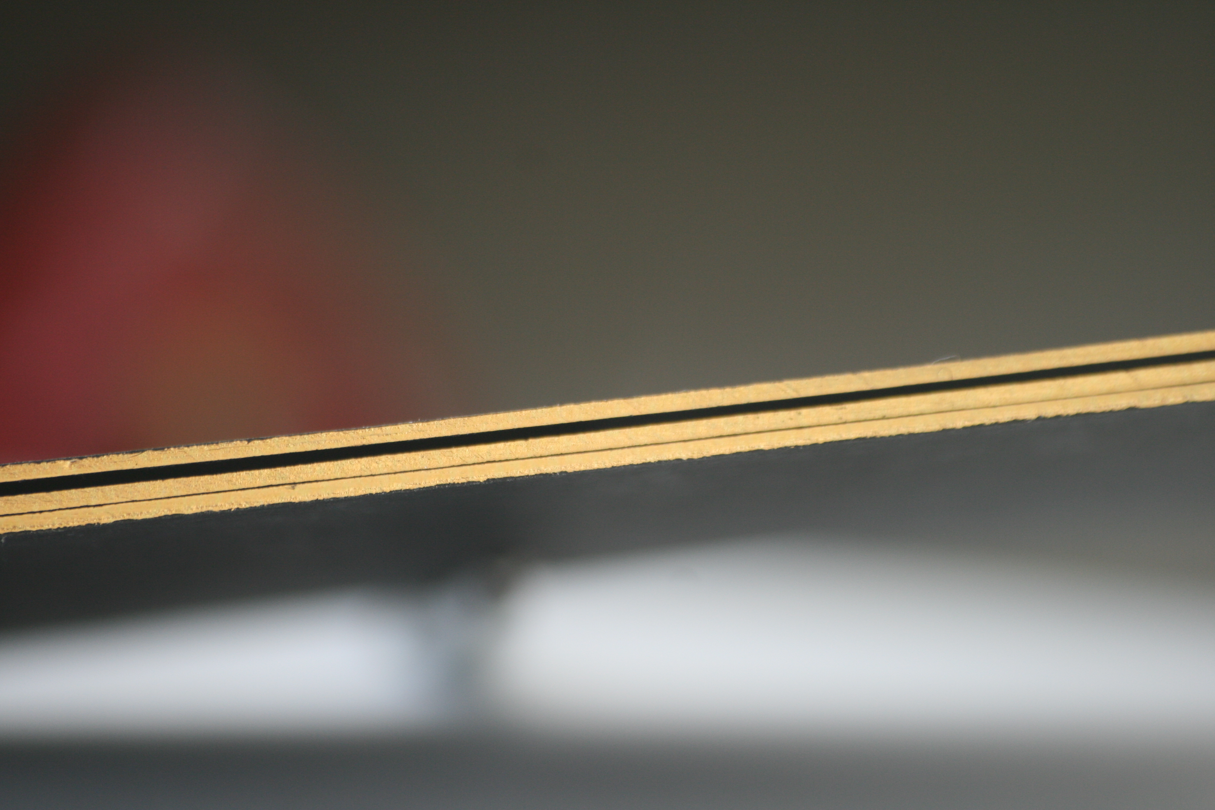Dat komt omdat we hiervoor geen inkt gebruiken maar goud- of zilverfolie. Voorwaarde voor het beste resultaat is een superstrakke ondergrond en wij hebben ontdekt hoe wij die kunnen bereiken. Dat begint natuurlijk met een vers geslepen mes en daarna komt het geheim van de smid.