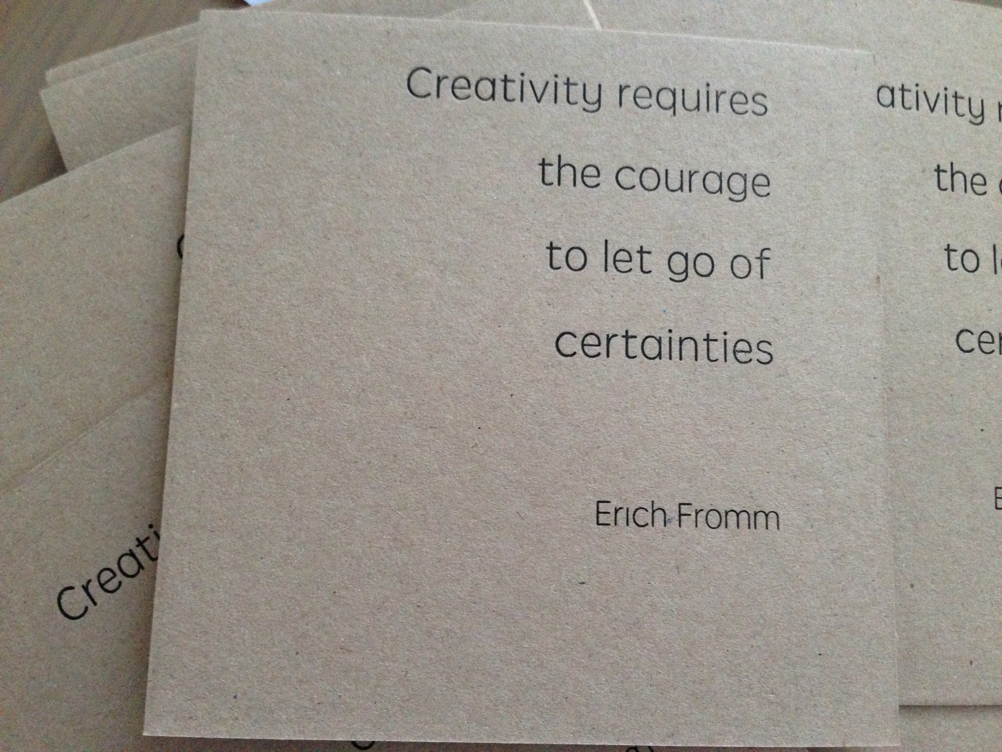 Een mooie uitspraak van Erich Fromm en een mooi thema om 2014 mee in te gaan. In boekdruk gedrukt op een Heidelberg Degel die eigenlijk al met pensioen had moeten zijn, maar het nog zo goed doet.