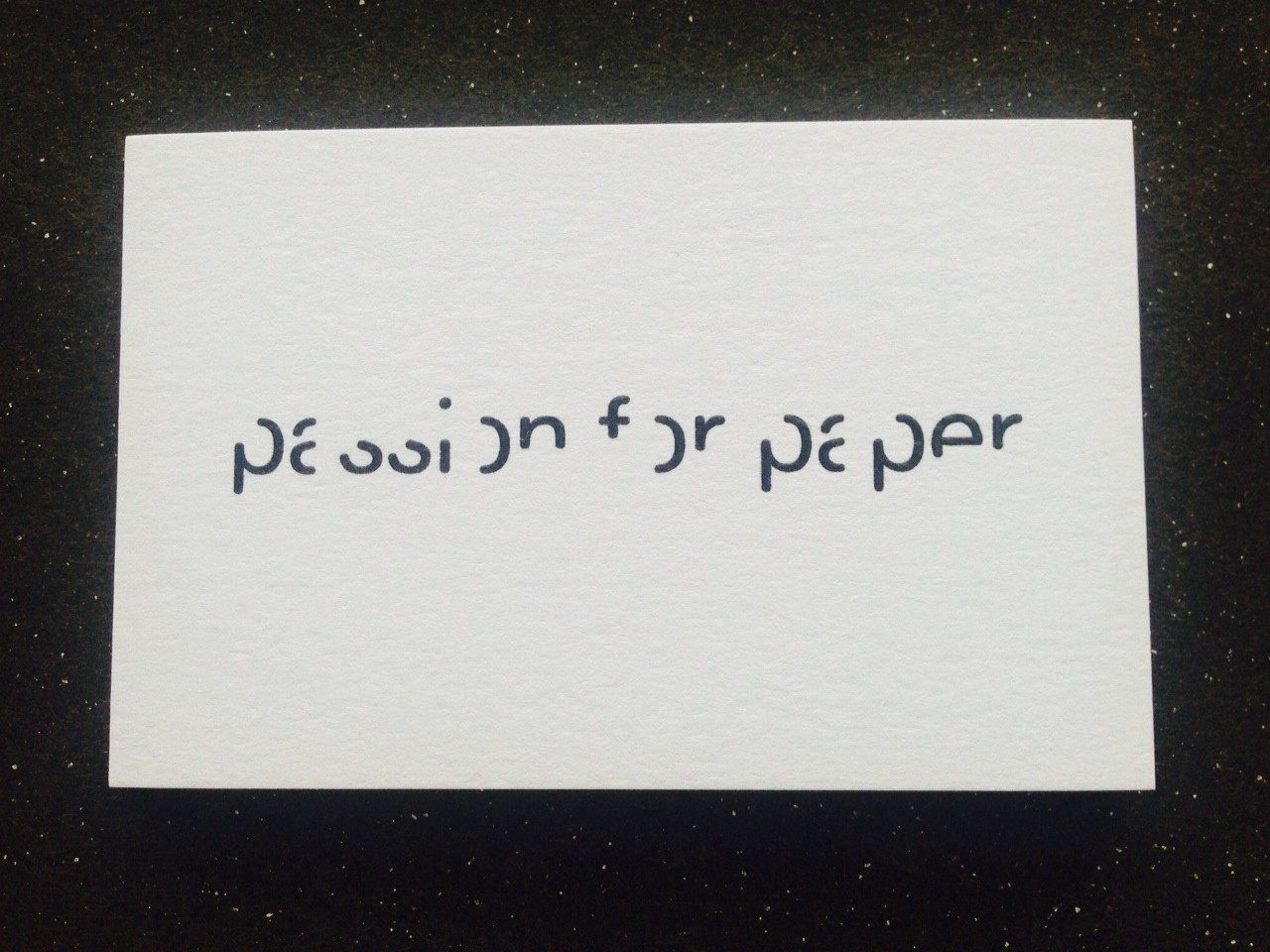 Ik vond het meteen een aparte letter, maar niet overal voor bruikbaar. Tot afgelopen week. De gelegenheid deed zich voor een nieuwe serie kaartjes te maken met opdikkende inkt. Ik noem het braille-inkt omdat het dan voor bijan iedereen duidelijk is wat je ervan kunt verwachten. De officiële naam is thermodruk. Een elegante toevoeging aan het drukproces in zeefdruk of offset waardoor het lijkt alsof de letters op het papier liggen. Duidelijk voelbaar.