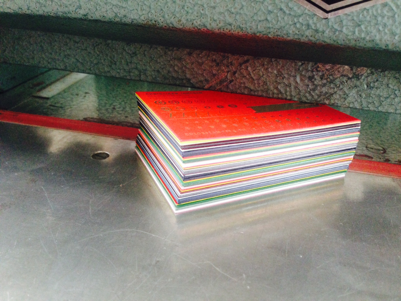 Voor iedereen die liever een kaartje op een van de 50 kleuren Colorplan heeft, hebben wij nog wel een alternatief. Bij serie “Het apestaartje van Ankie” hebben we gebruik gemaakt van 10 verschillende kleuren Colorplan en die laten bedrukken in foliedruk (kant 1) en letterpress (kant 2). Kleine staaltjes van wat er wel (en niet) kan.