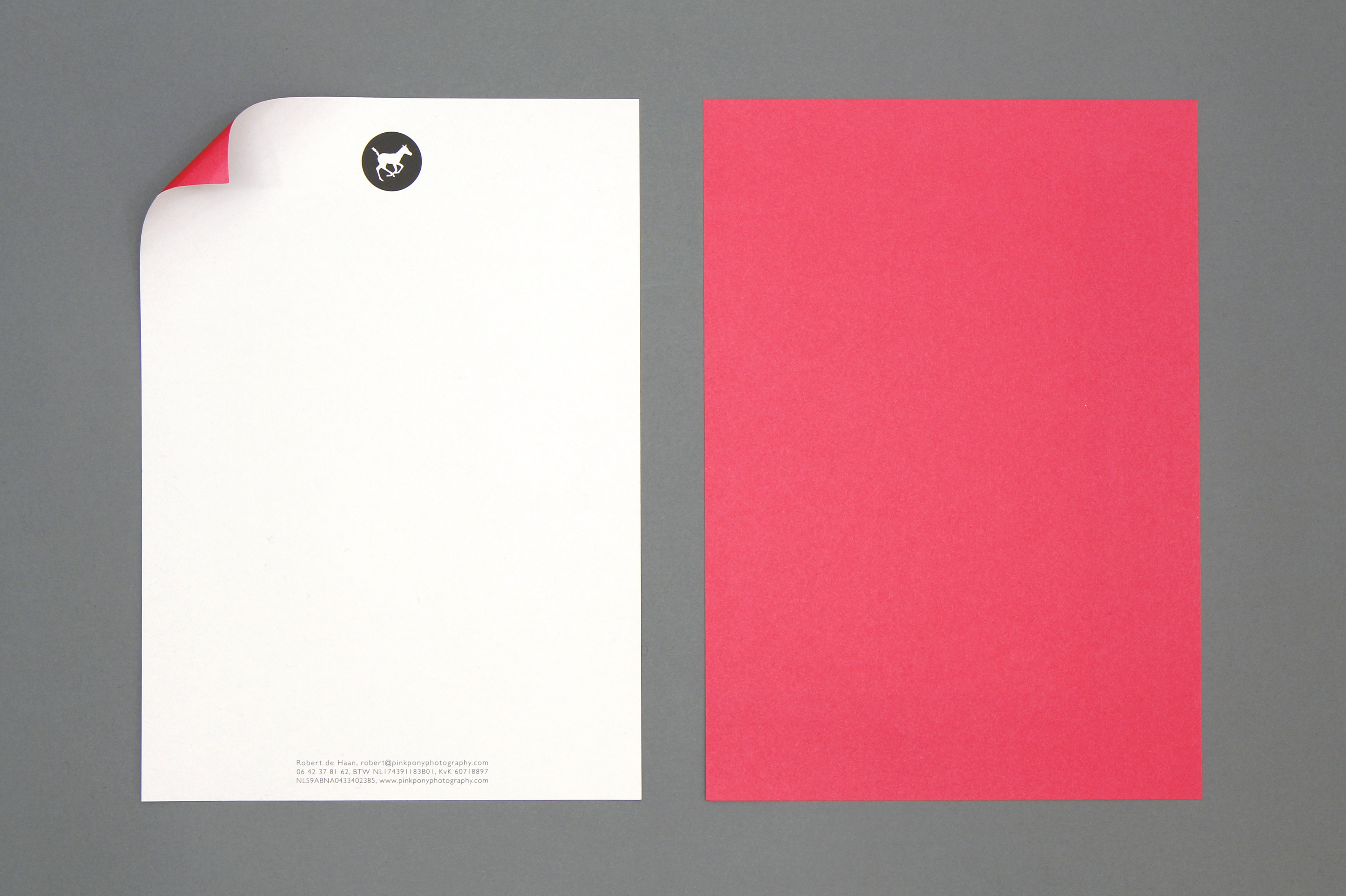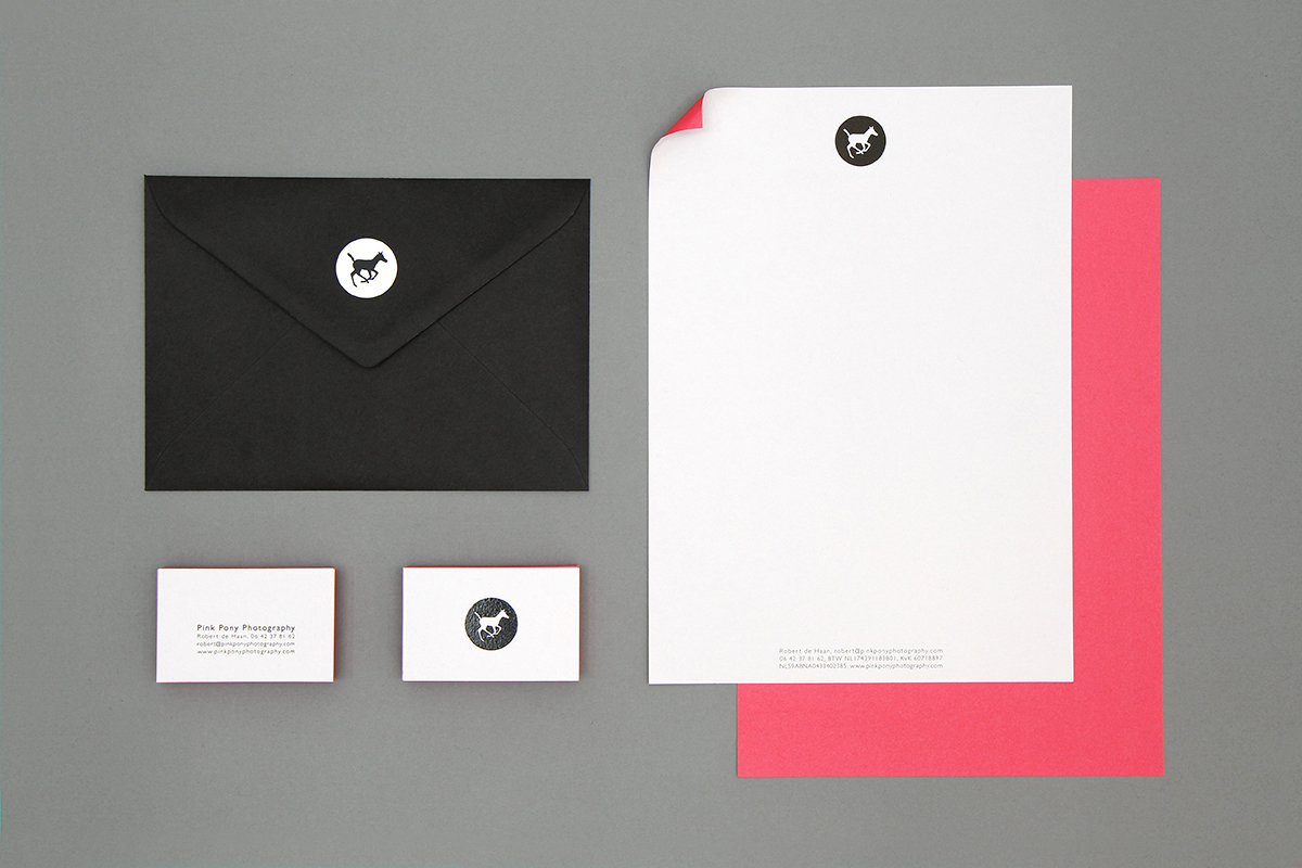 Grafisch vormgeefster Monique Goossens ontwikkelde het logo en de huisstijl voor Pink Pony Fotografie. Gezien de bedrijfsnaam moest de roze kleur wel terugkomen in de verschillende uitingen van het huisstijl.